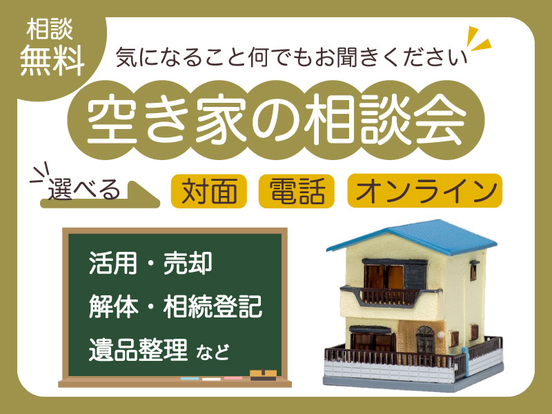 空き家の管理、売却、活用、相続など、どんなお悩みでもお気軽にご相談いただける無料相談会を開催します。